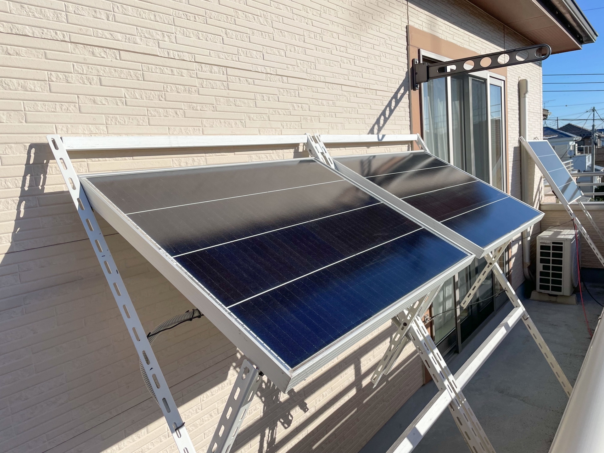 集合住宅や賃貸でもスペースとして設置しやすい場所です。手すりに固定したり、床に平置きしたりできる小型のパネルが販売されています。
